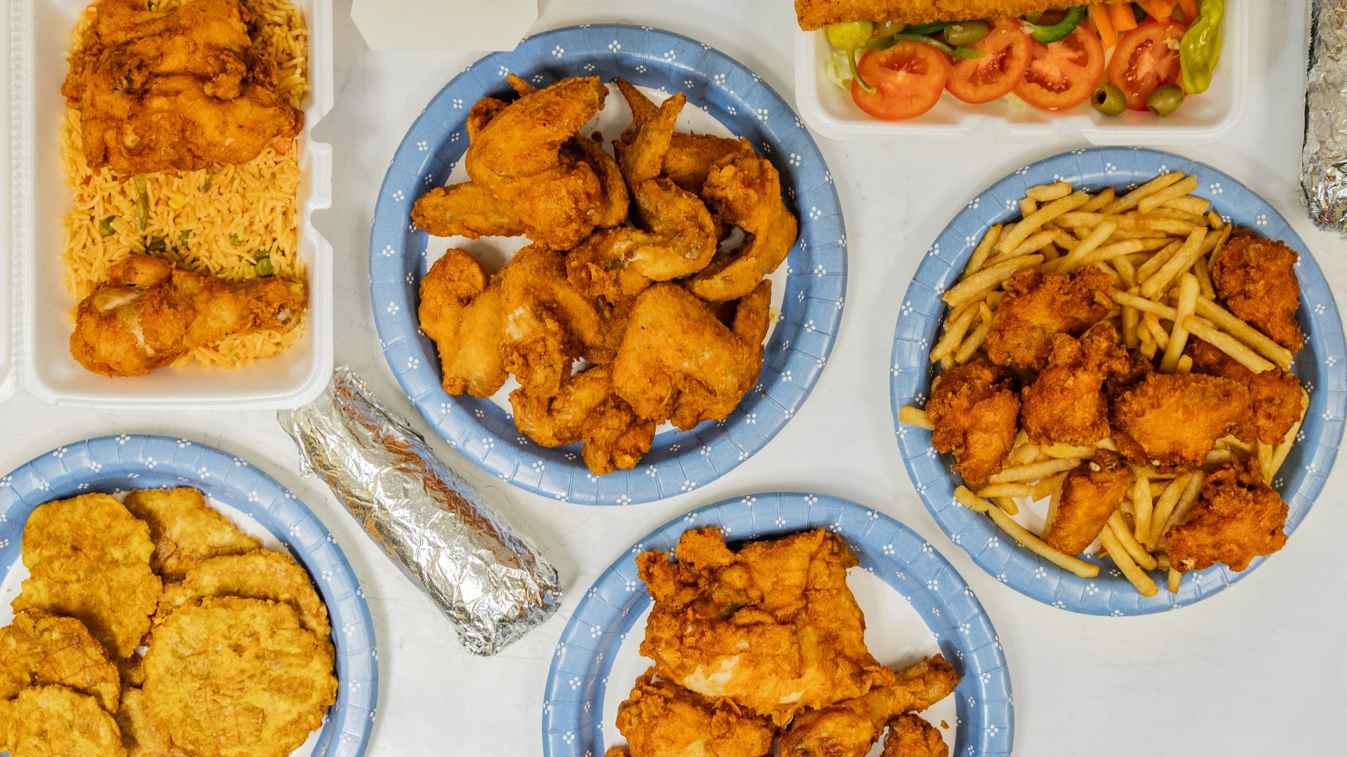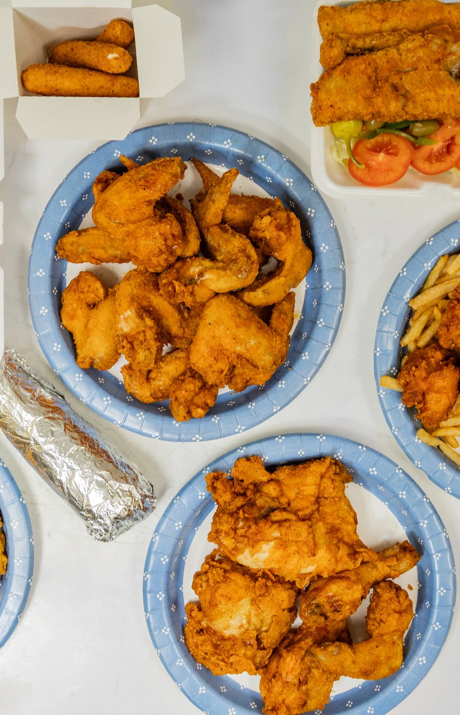 Fried to order, served fast. Sides, sauces, and rice meals all made in-house — pick up at the counter or have it brought to your door.